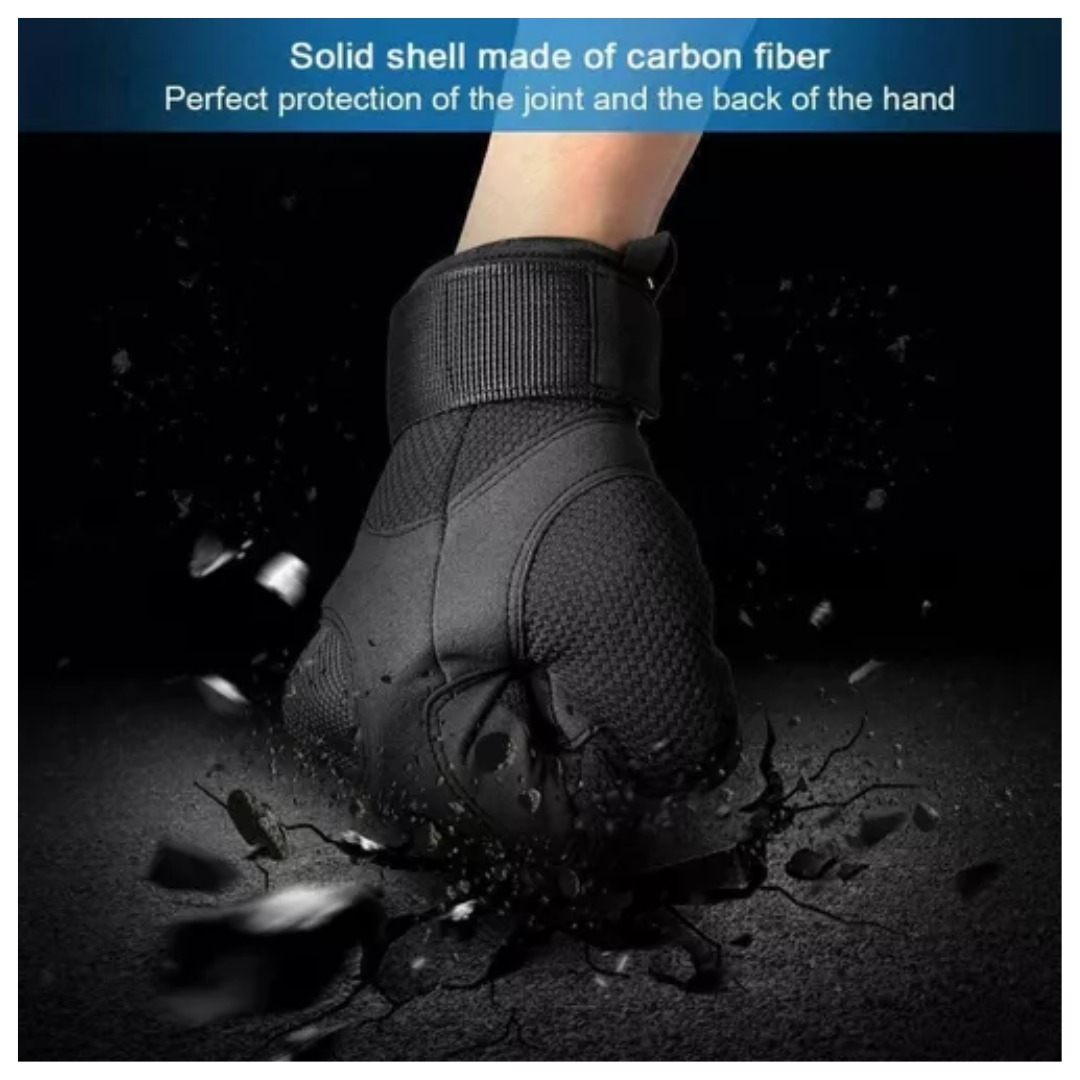 Guantes con protecciones rígidas en nudillos reforzados en palmas.