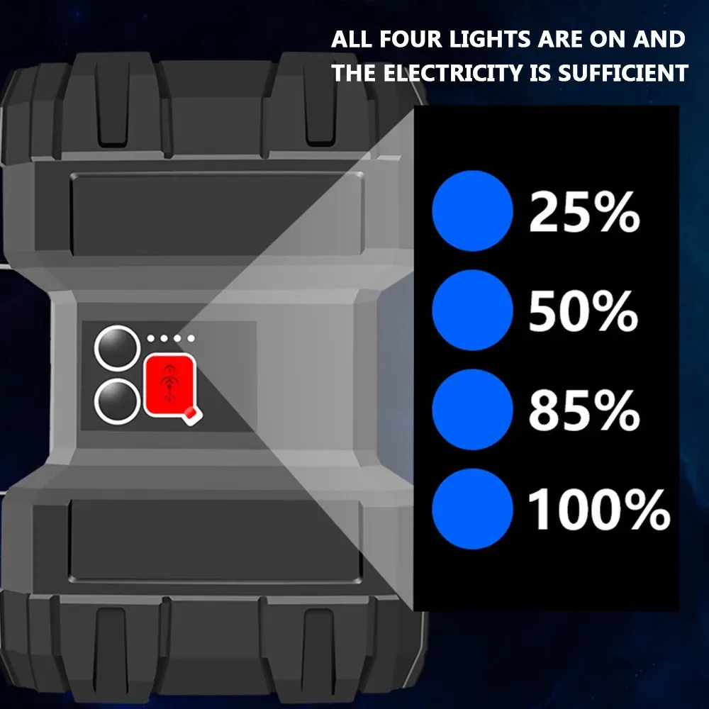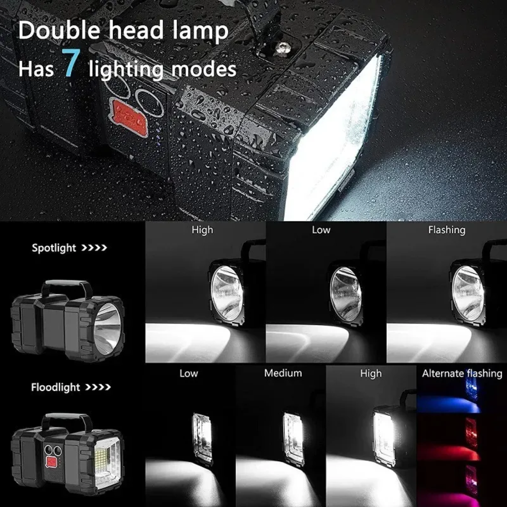 MÚLTIPLES MODOS: Esta linterna LED recargable 4 en 1 cuenta con doble cabezal para iluminación simultánea. Incluye modos de enfoque: Fuerte, Débil y Estroboscópico, y modos de enfoque: Débil, Medio, Fuerte y SOS, ¡proporcionando múltiples opciones de iluminación!