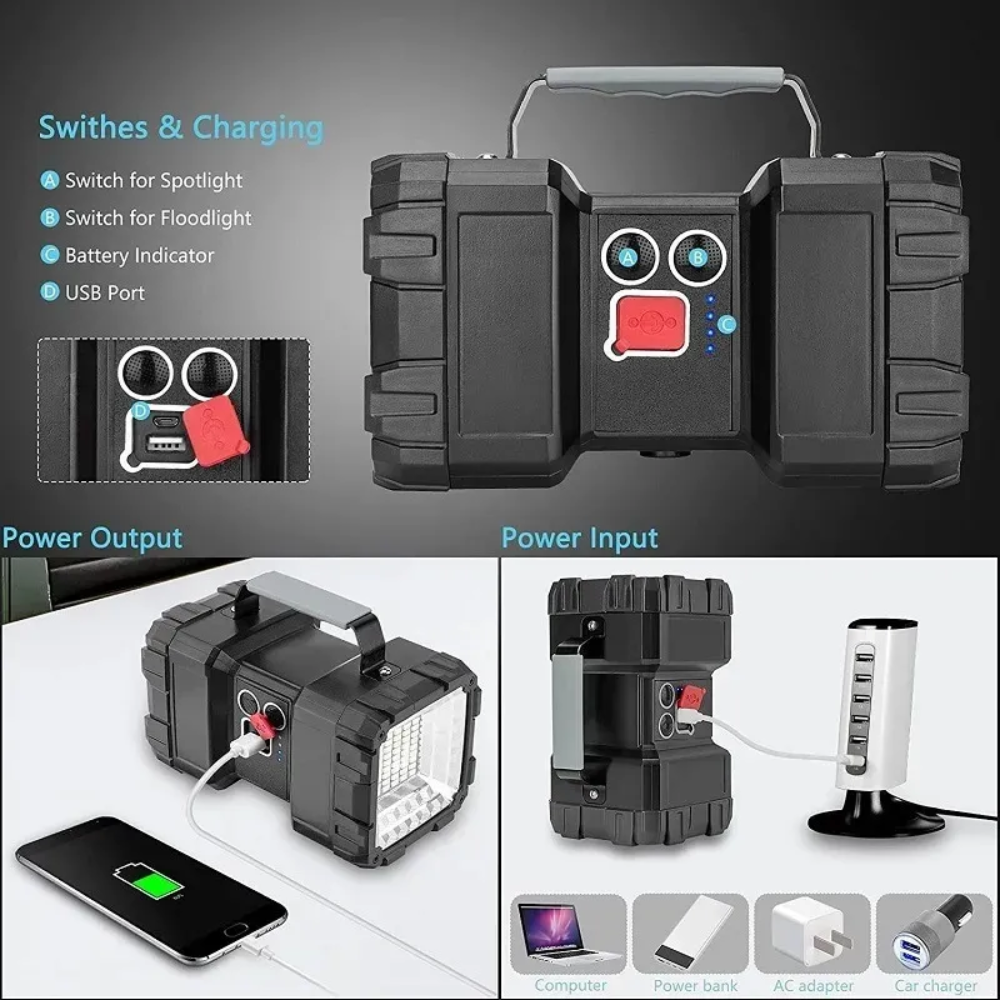 LARGA DURACIÓN DE LA BATERÍA: Este foco LED viene con una batería de iones de litio 32650 de 10.000 mAh que proporciona de 4 a 6 horas de autonomía, por lo que es perfecto para aventuras nocturnas. También funciona como fuente de alimentación móvil para cargar su cámara, teléfono móvil, ordenador portátil y mucho más.