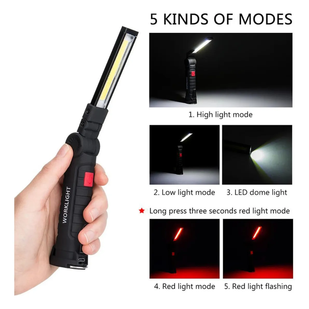 Linterna Tactica Led Cob Recargable De Luz Trabajo Plegable