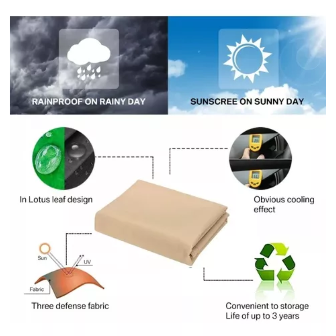El toldo vela impermeable está hecho de poliéster de alta densidad con un revestimiento de PU, impermeable y resistente a roturas y desgarros.